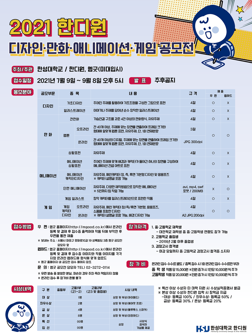 2021 한디원 디자인/만화/애니메이션/게임 공모전 - 한성대학교 한디원